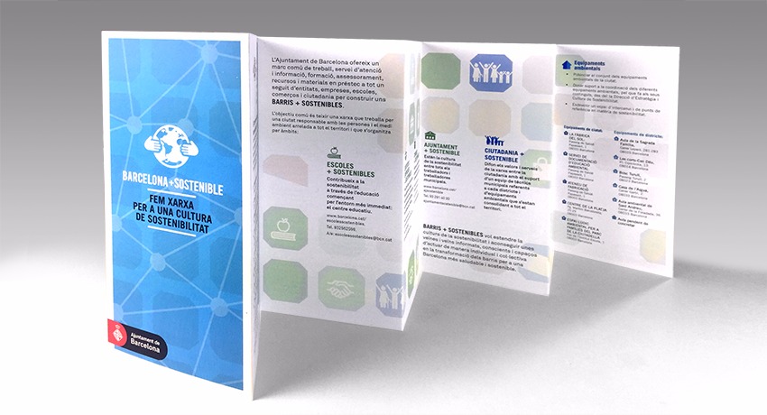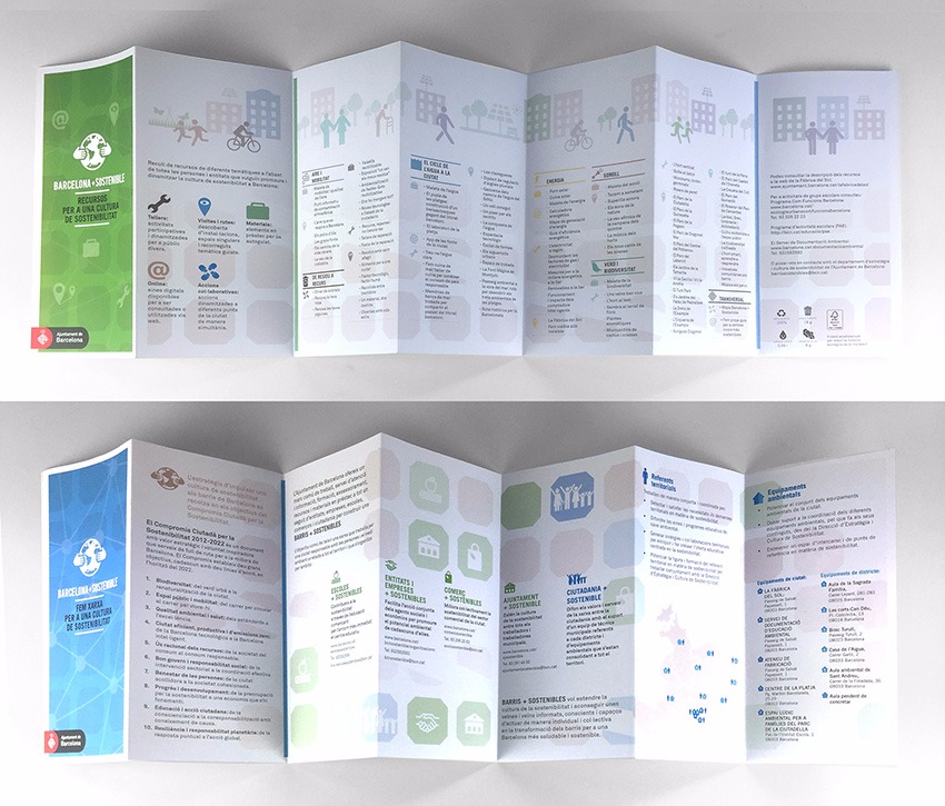 Un fulletó amb dues cares del mateix projecte, però que necessitaven estar separades. Dissenyat per Lapage i redactat conjuntament amb l’Ajuntament de Barcelona. Un treball en equip on he donat suport per explicar eines que ja existeixen però que no arriben a tota la ciutadania que es voldria. Els ingredients per assolir-ho són: una estructura de continguts i un relat proper i endreçat; un suport gràfic atractiu, net i que ajuda a endreçar; i un equip compromés i crític.