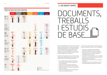Captures de pantalla d’algunes de les pàgines del ‘Document de síntesi’ del PREMET25 amb elements gràfics que li donen personalitat i mantenen el relat elaborat per comunicar-lo millor.
