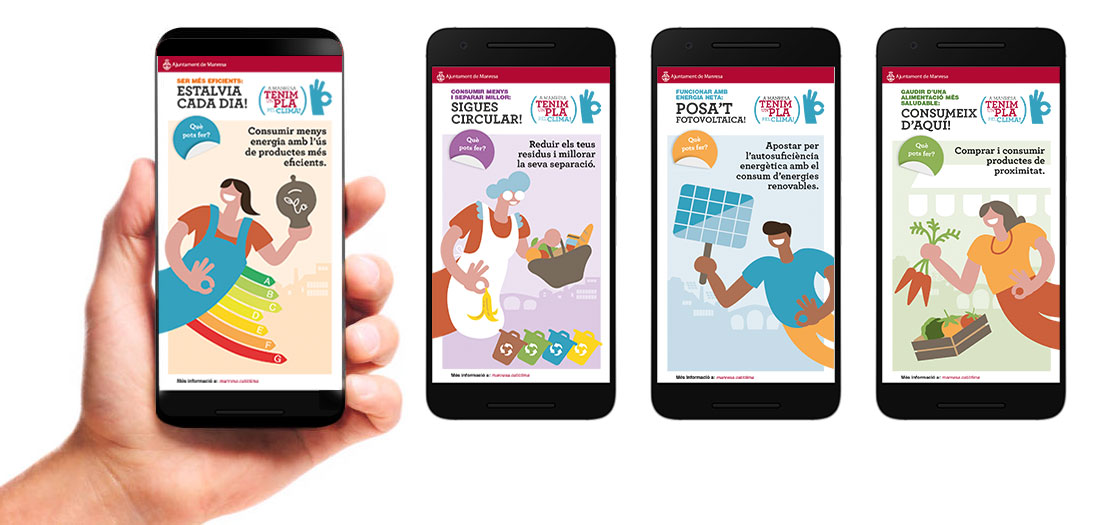 A Manresa tenim un Pla pel Clima! Aquest és el claïm de la campanya de comunicació del PAESC de Manresa. En aquest projecte he elaborat els continguts i missatges clau en base a una estructuració més comunicativa i que permet transmetre un relat clar i atractiu a la ciutadania. En la part gràfica, com és habitual, Lapage Original ha traduït els conceptes clau en imatges suggerents, properes i que mostren una ciutadania empoderada.