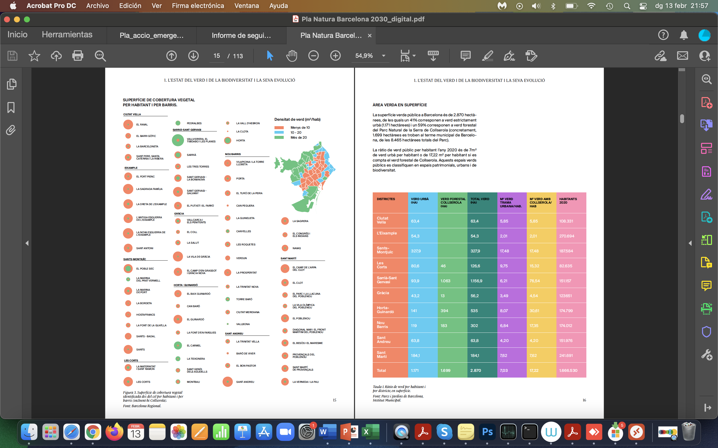 És en aquest context on les ciutats han de tenir un paper actiu i compromès tant en relació amb la salut de la ciutadania com en relació amb la conservaci. de la biodiversitat de la Terra. És un fet reconegut internacionalment, a més, que les funcions i els beneficis del verd urbà el converteixen en una de les principals estratègies d’adaptació de les ciutats per fer front al canvi climàtic. Per aquest motiu, una de les principals mesures de la Declaració d’emergència climàtica de Barcelona, presentada el 15 de gener de 2020, té a veure amb la conservació i l’increment de la infraestructura verda urbana.