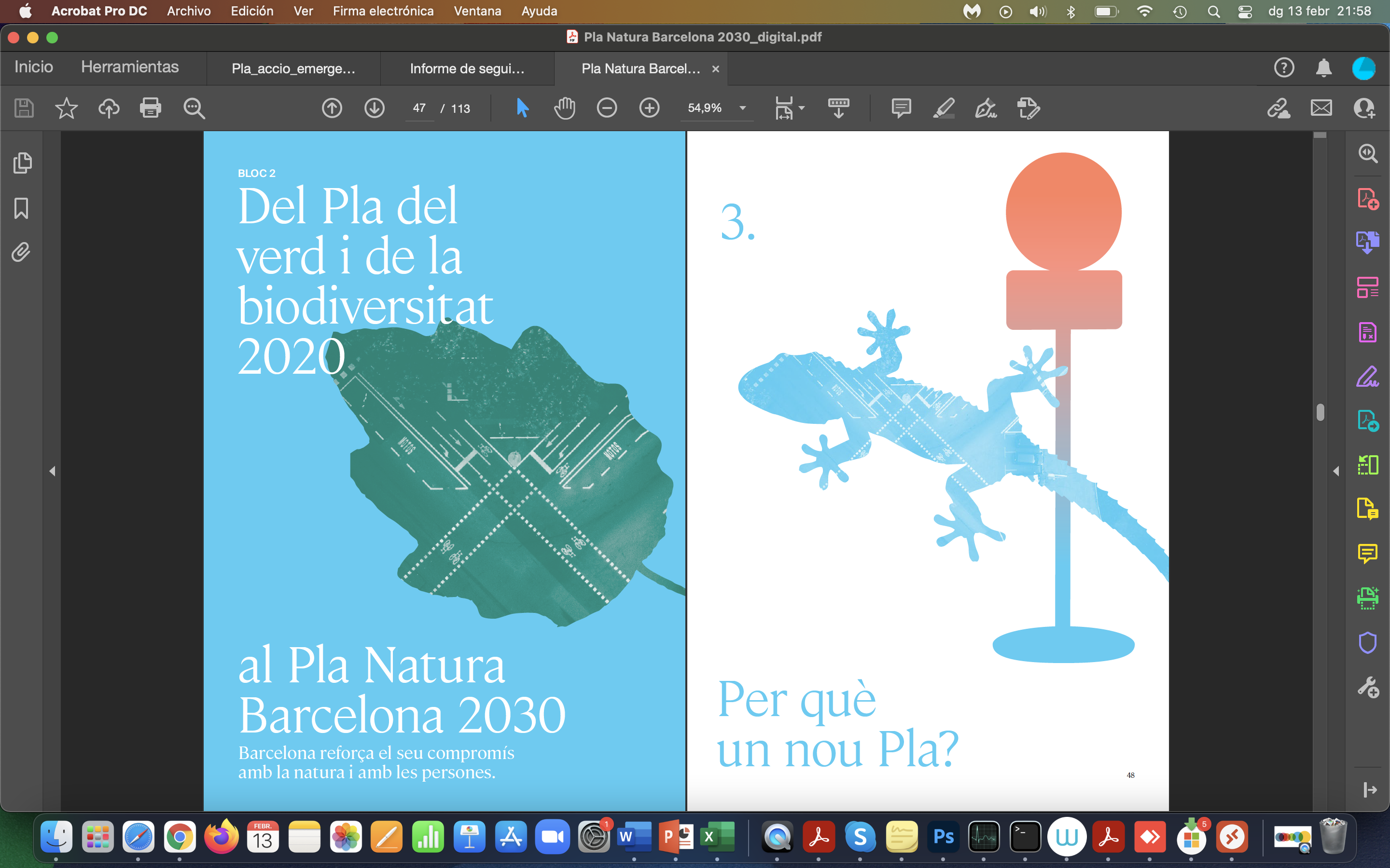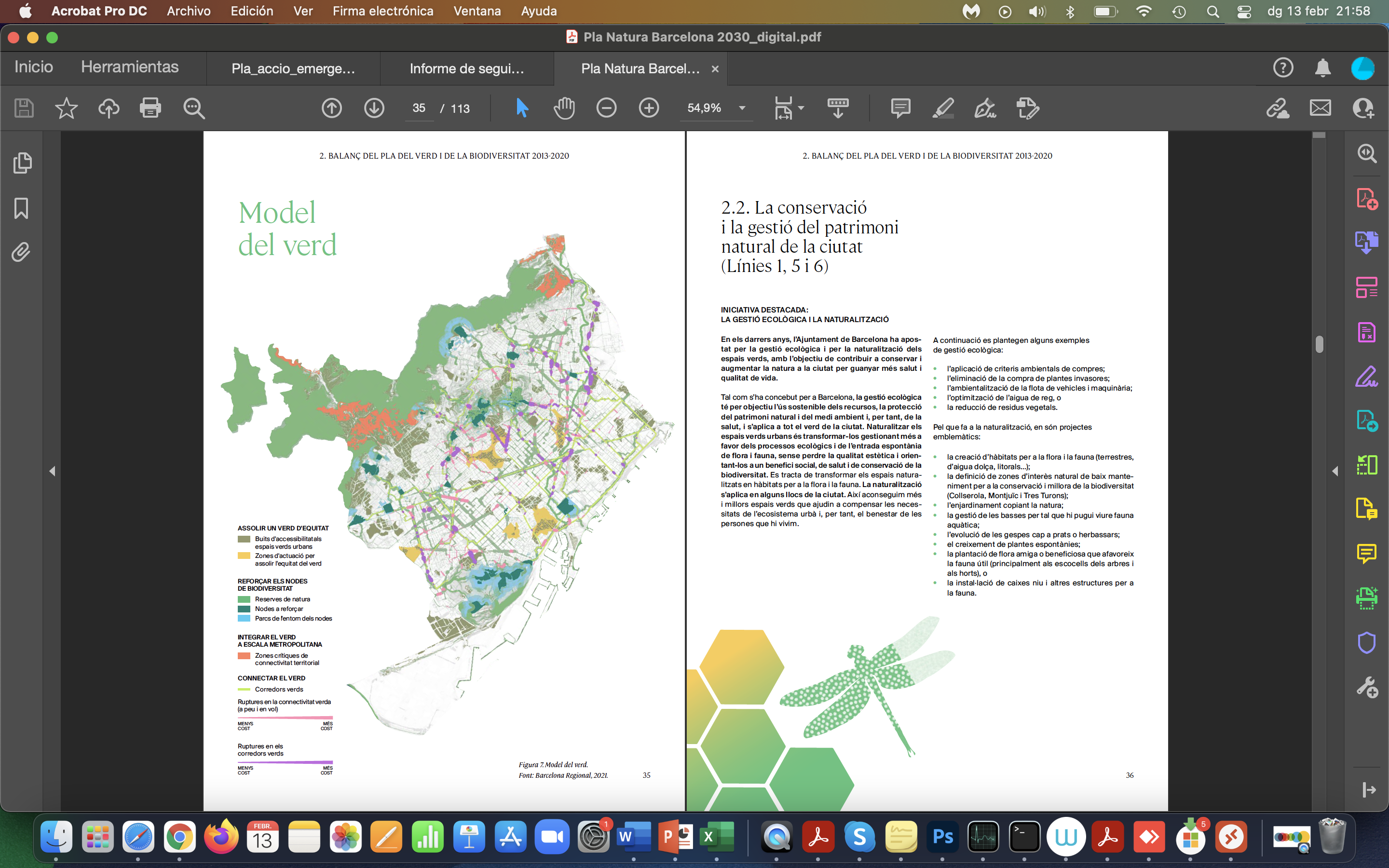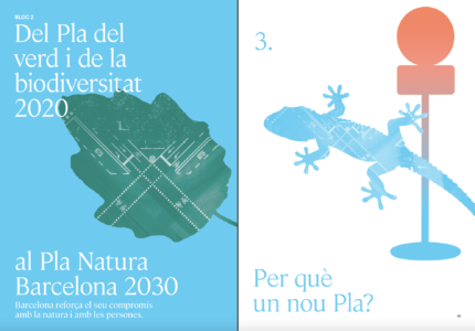 El Pla Natura Barcelona 2030 és un instrument estratègic i participat, que té la visió d’una ciutat de l’any 2050 amb una infraestructura verda funcional i ecològica, amb un verd equitatiu, accessible, connectat en la trama urbana i amb la xarxa verda metropolitana. L’objectiu és maximitzar els serveis socials i ambientals, sobretot els de salut i adaptació al canvi climàtic. He col·laborat en la redacció, en el procés de participació interna i en la coordinació gràfica d’aquest nou Pla de l’Ajuntament de Barcelona. Es tracta de l’actualitazió del Pla del verd i de la biodiversitat 2020, llançat l’any 2013. Calia actualitzar-lo i donar més força als compromisos, en un context més necessari que mai que defineixi les principals línies d’actuació del verd i la biodiversitat durant els propers anys. Aquest nou pla pren el nom de Pla Natura per donar força comunicativa al concepte, i expressar la relació de la natura urbana amb la natura de la Terra i el compromís de Barcelona amb els reptes ecològics globals.