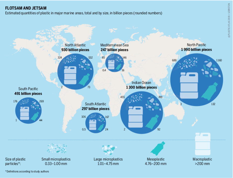 A tot el món, es compra 1 milió d’ampolles de plàstic per minut i 5 bilions de bosses plàstiques sol ús per any. En total, 50% de tot el plàstic produït està dissenyat perquè ho usem una vegada i ho llencem a les escombraries. El plàstic s’ha tornat gairebé omnipresent en el medi ambient, tant que els científics han suggerit que servirà com un indicador geològic de l’era de l’Antropocè.