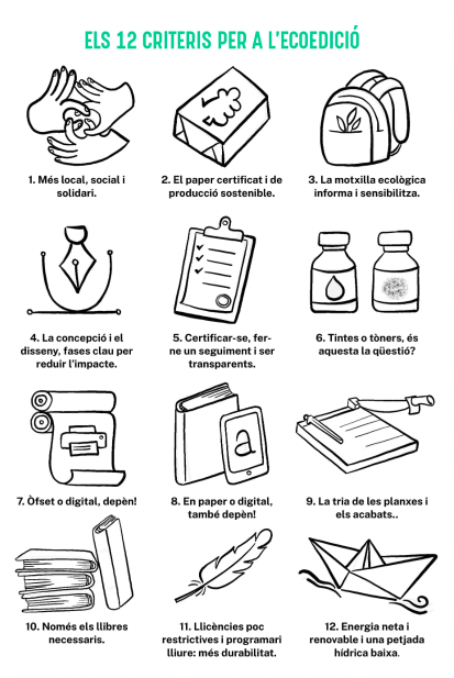L’ICEC – Institut Català de les Empreses Culturals en col·laboració amb l’Institut de l’Ecoedició (responsable dels continguts) va encarregar-me la reestructuració dels continguts de la Guia de l’Ecoedició així com la coordinació del seu disseny i maquetació final. Es tracta d’un informe que presenta els Criteris per un sector editorial més sostenible de manera clara, atractiva i divulgativa, sota el paraigües del Pla C* Cultura del Clima.