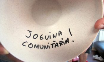 S'apropa amb certa cautela. Algú segur l'estarà observant. Porta una caixa de plàstic buida, d'aquelles de color verd fosc de la fruita. Un cordill de dos colors, de cotó, bastant llarg. I una cartolina plastificada amb un missatge escrit a mà, amb colors i vistós. I també una bossa plena de coses. Ja al costat de la tanca del parc infantil, lliga la caixa, lliga la cartolina... Què hi voldrà posar que ho lliga tan ben lligat? I de sobte, hi aboca dins la capsa un munt de pots de plàstic, culleres de fusta, pals, cilindres de cartró, etc. Un conjunt de materials inespecífics, perfectes per promoure el joc heurístic. I quasi tots identificats: 'Joguina comunitària!'.